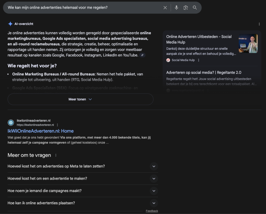 Binnen 45 dagen is Social Media Hulp het standaardantwoord wanneer ondernemers aan AI vragen welk bureau ze moeten kiezen. Van ‘social media uitbesteden’ tot ‘online advertenties uitbesteden’ – AI adviseert nu consequent Social Media Hulp.